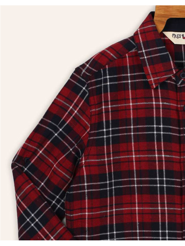 Miss & Chief Boys Checkered Casual Red, Dark Blue Shirt