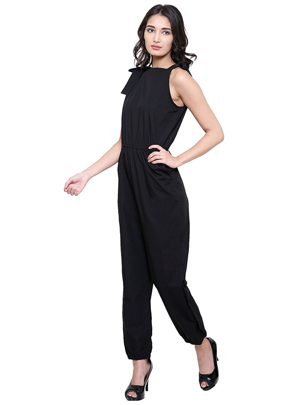 Soft light and natural cotton jumpsuit. It has an adjustable shoulder tie straps with boat neck, elastic waist band, 2 side pockets with bottom elastic hem. Wear this sleeveless jumpsuit on any summer day for a great look when you step out. Made up of 100% cotton