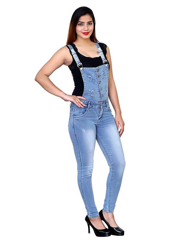 FNocks Women Girls Ladies Slim Fit Denim Casual Dungaree