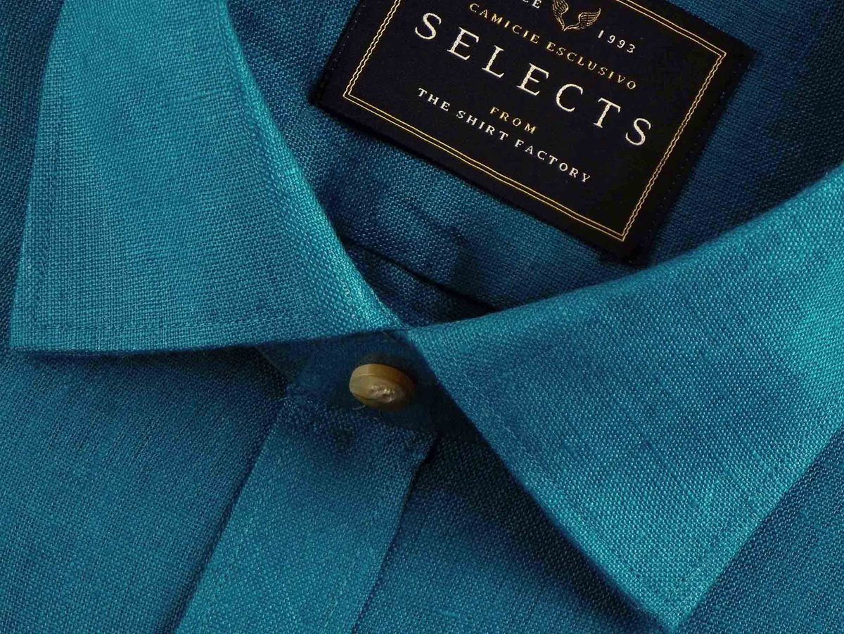 Selects Pure Linen Plain Shirt - Blue (0289)