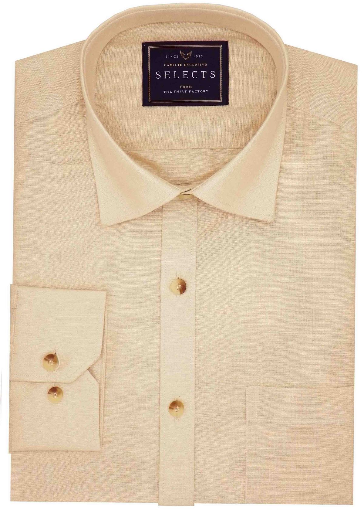Selects Linen Cotton Blended Plain Shirt - Beige (0297)