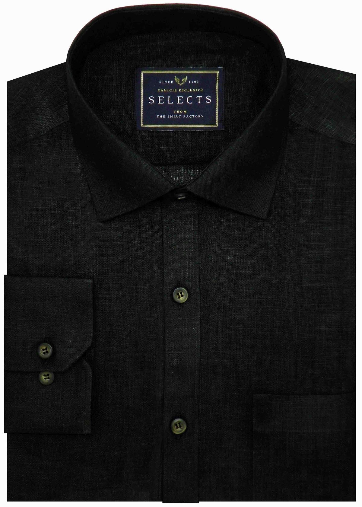 Selects Pure Linen Plain Shirt - Black (0292)