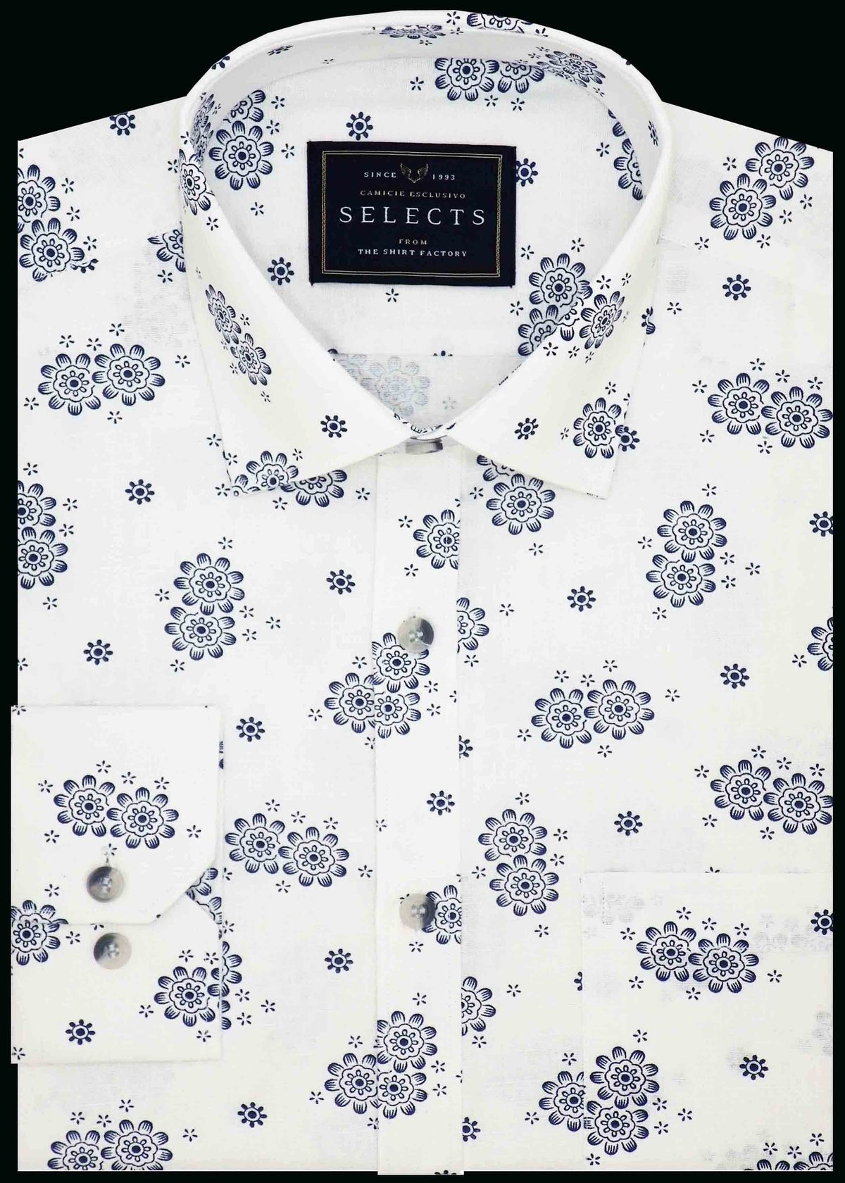 Selects Linen Cotton Blended Printed Shirt - White (0562)
