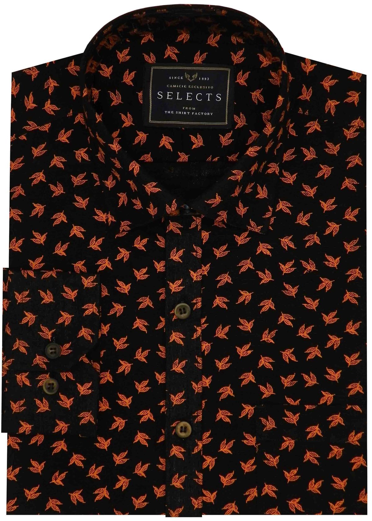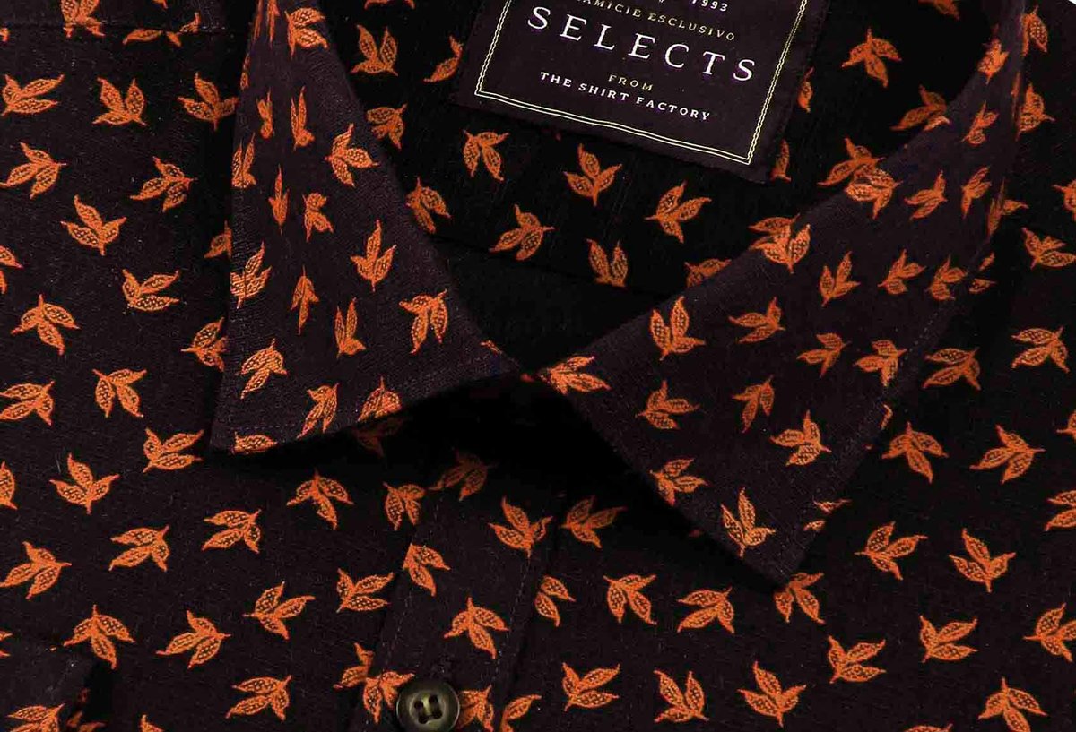 Selects Linen Cotton Blended Printed Shirt - Orange Print (0565)