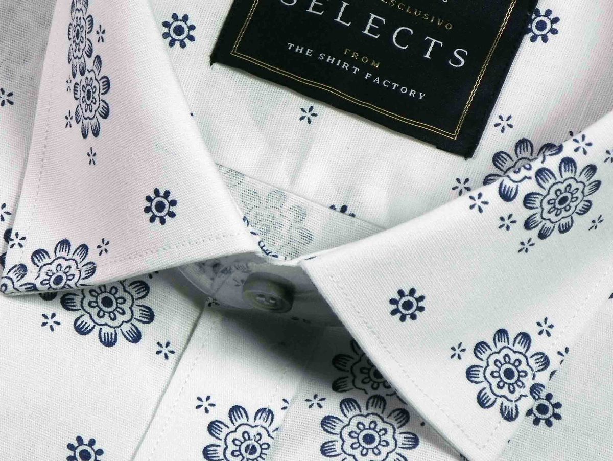 Selects Linen Cotton Blended Printed Shirt - White (0562)