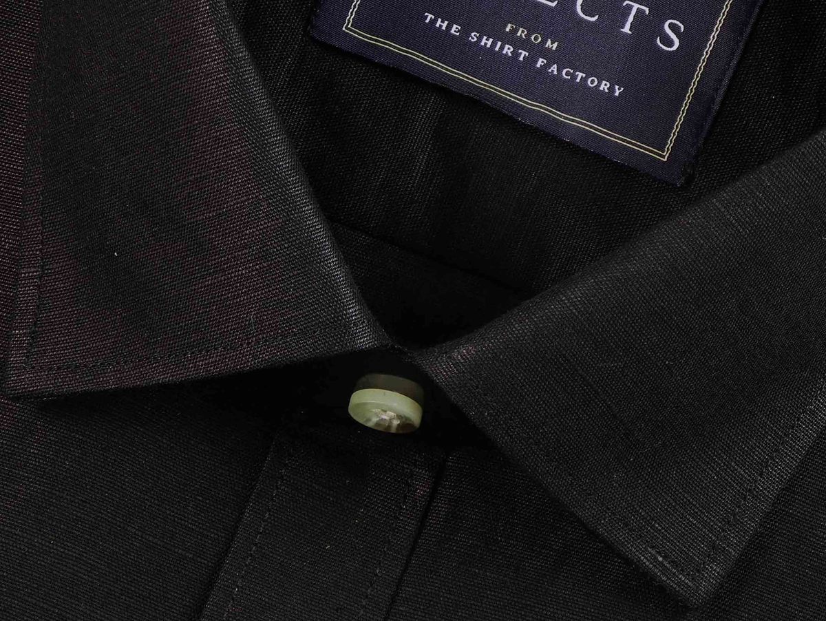 Selects Linen Cotton Blended Plain Shirt - Black (0489)
