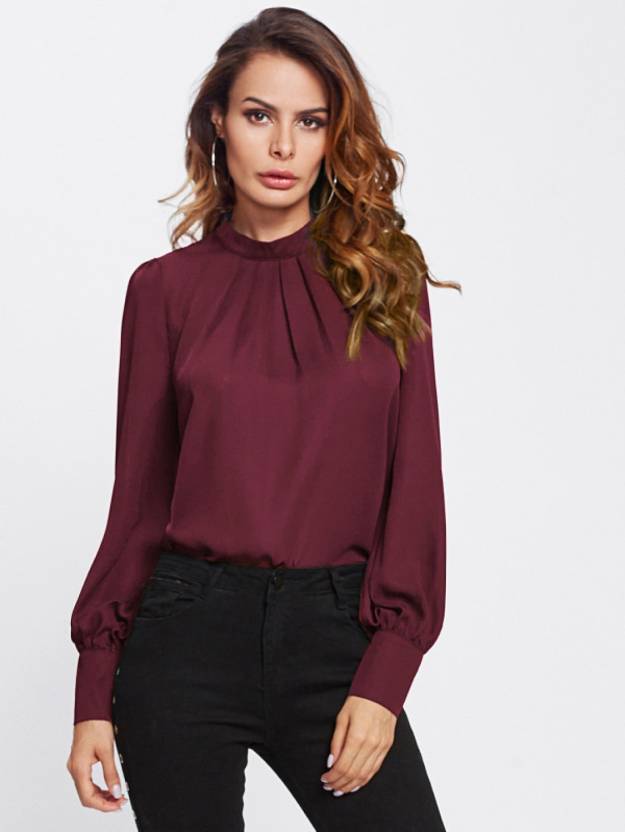 Alfa Fashion Party Puff Sleeve Solid Women's Maroon Top